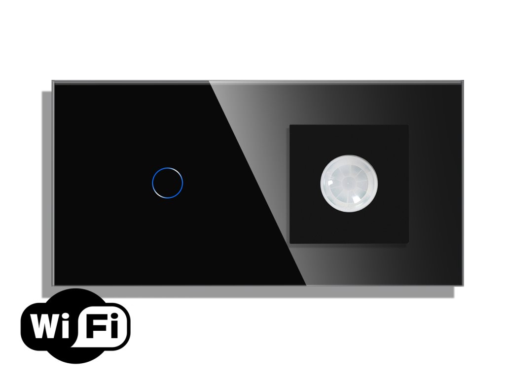 WiFi vypínač Gala Touch + pohybový senzor, skleněný rámeček, černá