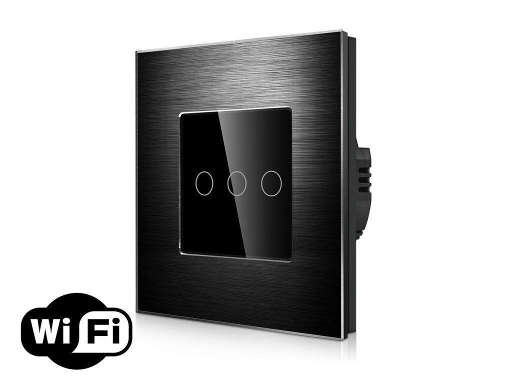 WiFi vypínač Luma Touch 3 okruhy, hliníkový rámeček, černá