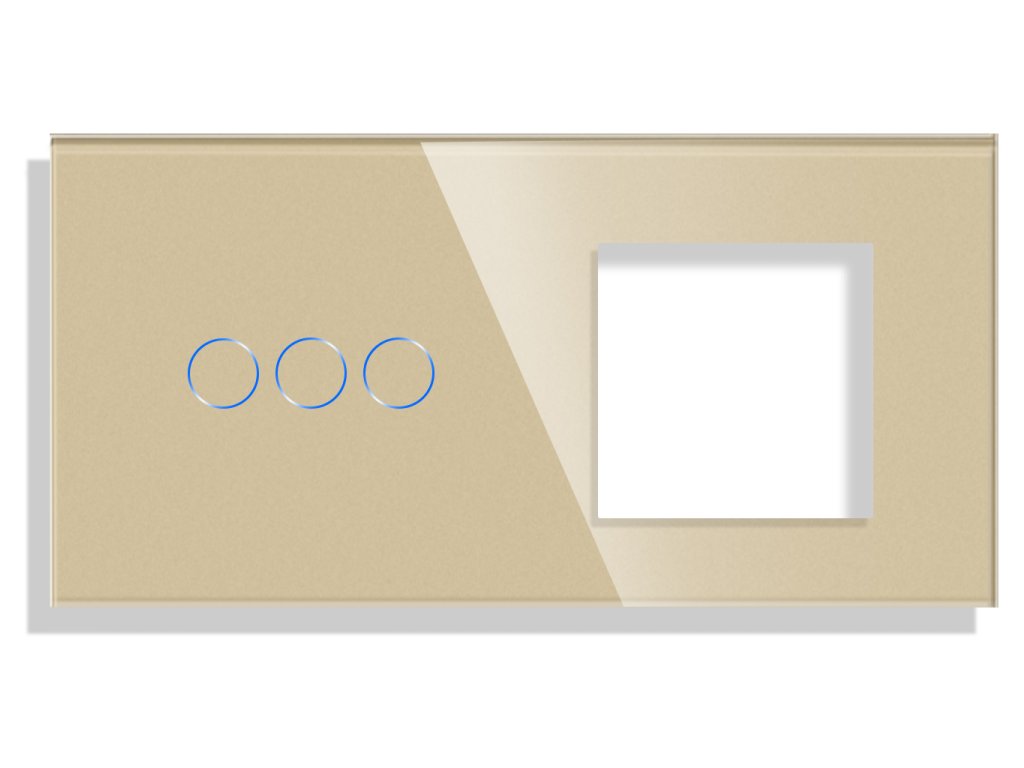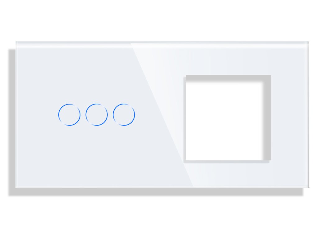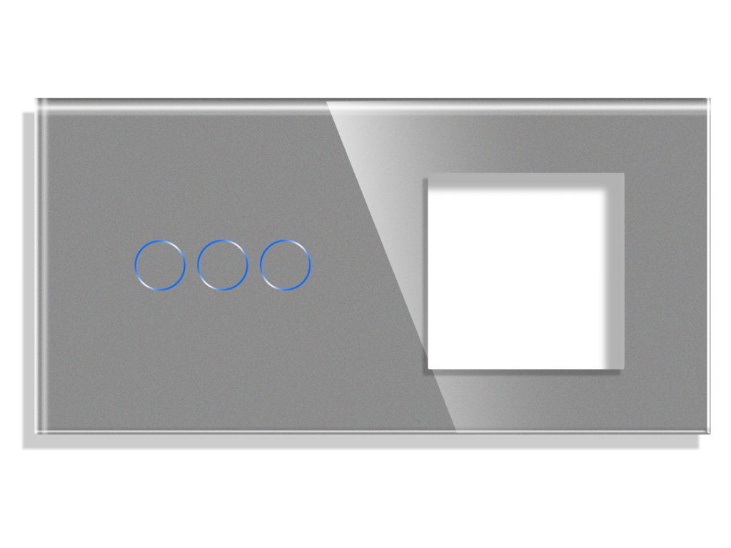 Dotykový panel s rámečkem vhodný pro dvojkombinaci jednoho trojtlačítkového strojku a jednoho funkčního modulu. Rozměr 157x86 mm.