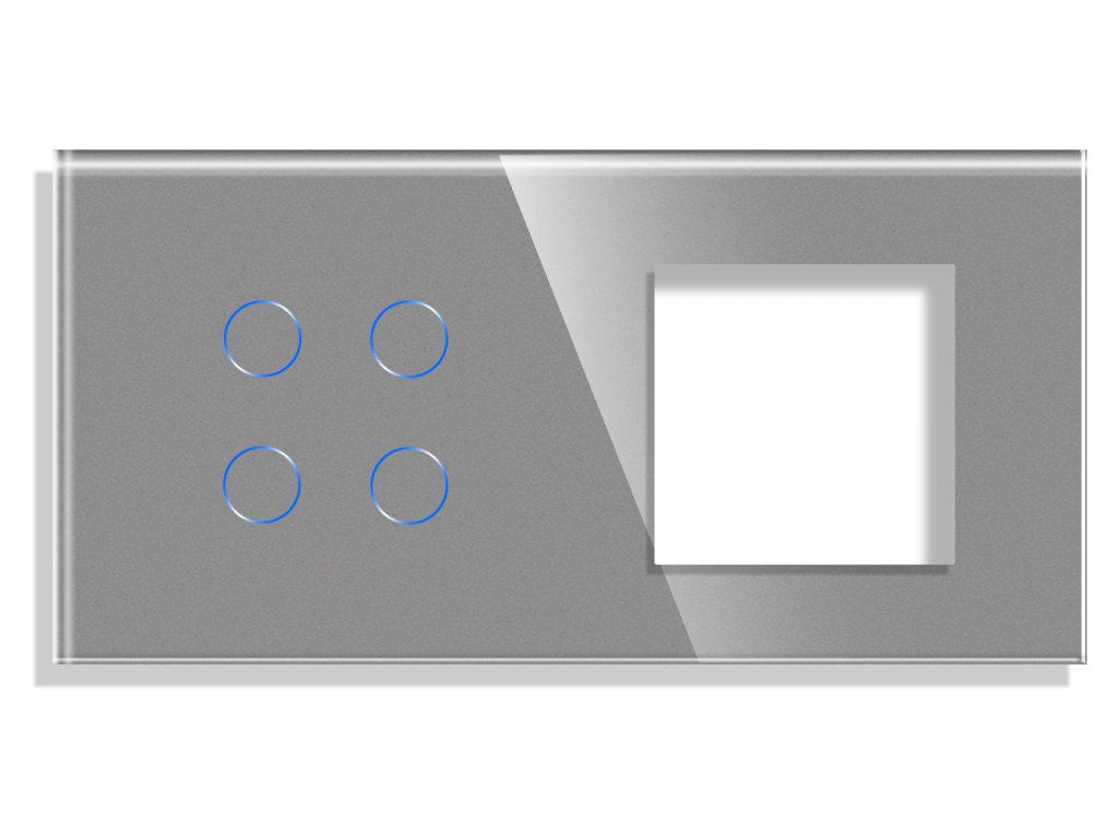 Dotykový panel s rámečkem vhodný pro dvojkombinaci jednoho čtyřtlačítkového strojku a jednoho funkčního modulu. Rozměr 157x86 mm.