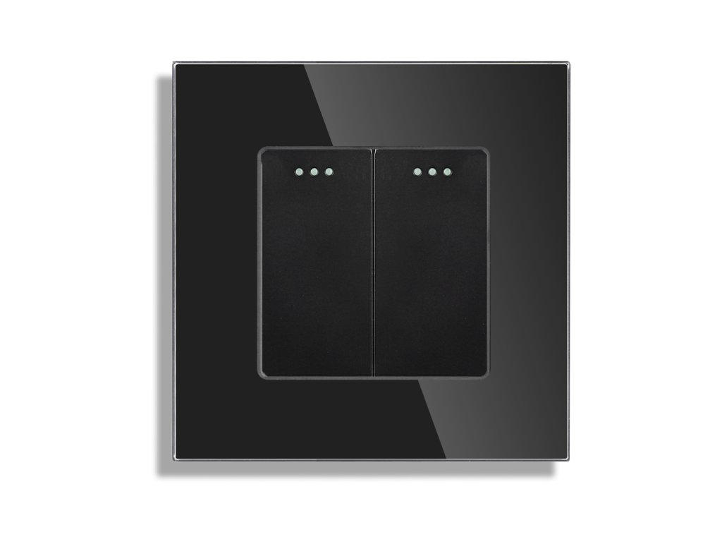 Vypínač Gala 2 okruhy, řaz. č.6+6, s tečkami, skleněný rámeček, černá