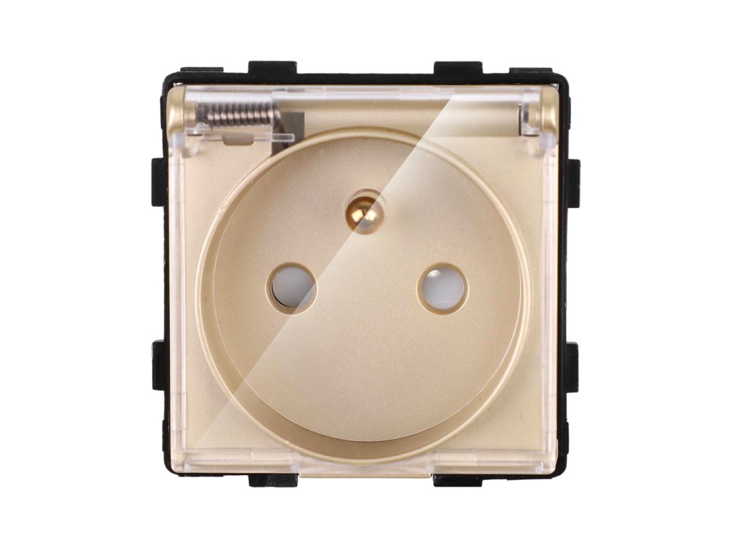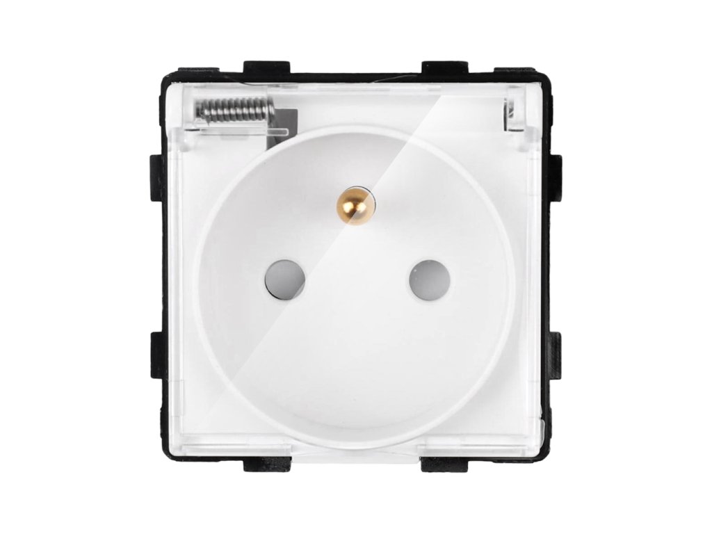 Modul voděodolná zásuvka s krytem (IP44), vhodný pro prostory se zvýšenou vlhkostí. Je kompatibilní s jakýmkoliv rámečkem z naší nabídky v libovolné barevné kombinaci.