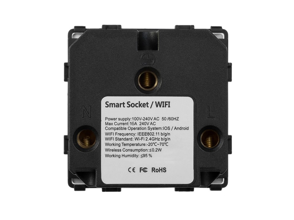 Modul WiFi zásuvky 230 V, který je kompatibilní s libovolným naším rámečkem. Poskytuje možnost ovládání přes WiFi a aplikaci v telefonu či tabletu. Kompatibilní s Google Assistant, Amazon Alexa, Tuya Smart, IFTTT. Zásuvku je možné taky vypnout/zapnout pomocí tlačítka na zásuvce. Vedle tlačítka je modrý indikátor provozu zásuvky.