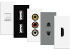 Moduly, které se vkládají do rámečků, případně do panelů s rámečky. Rozlišujeme na zásuvky, mechanické, dotykové, a půlmoduly, které se vejdou do rámečku dvě.
