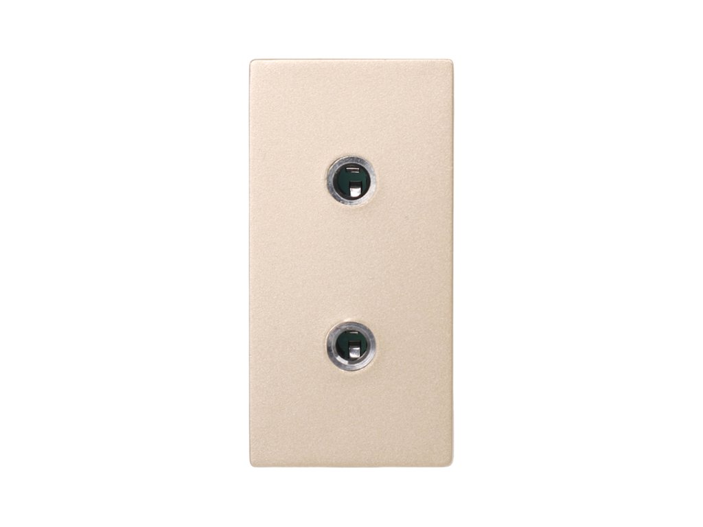 Půlmodul dvojité koncové zásuvky 3.5mm jack, odpovídající polovině otvoru rámečku, dostupný ve čtyřech barevných variantách. Pro instalaci je nutný specifický rámeček pro půlmoduly.