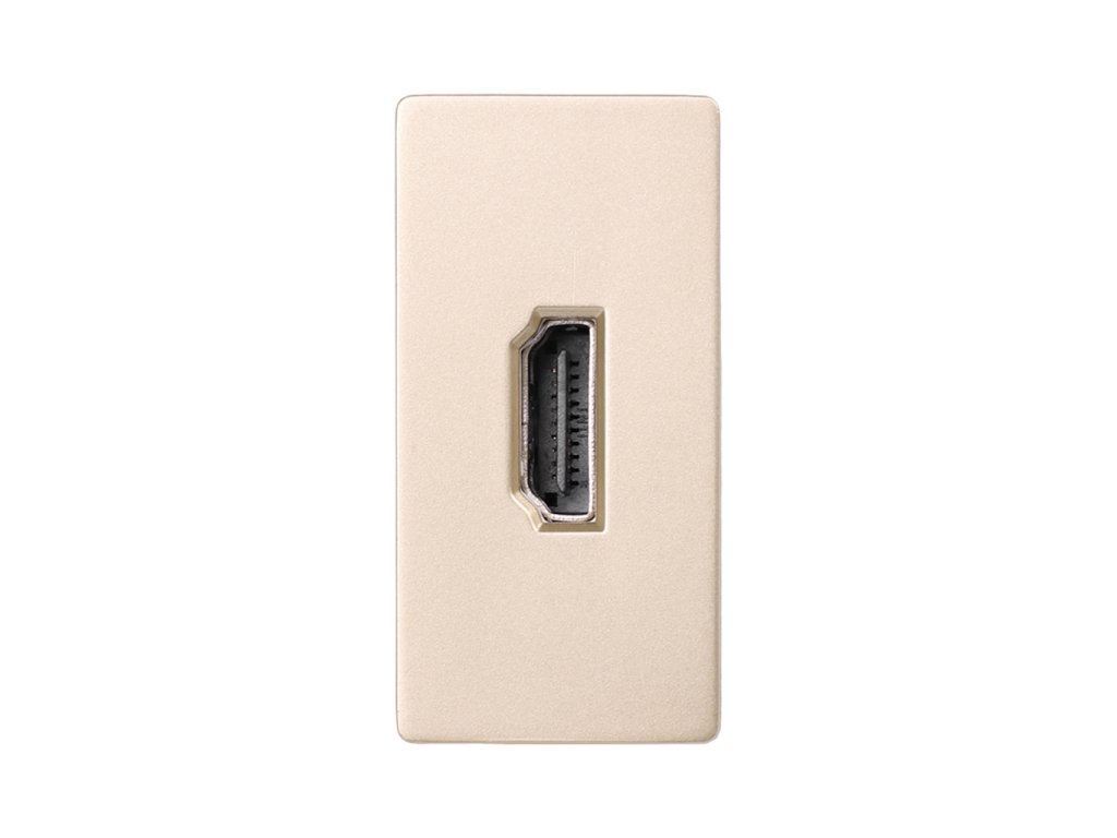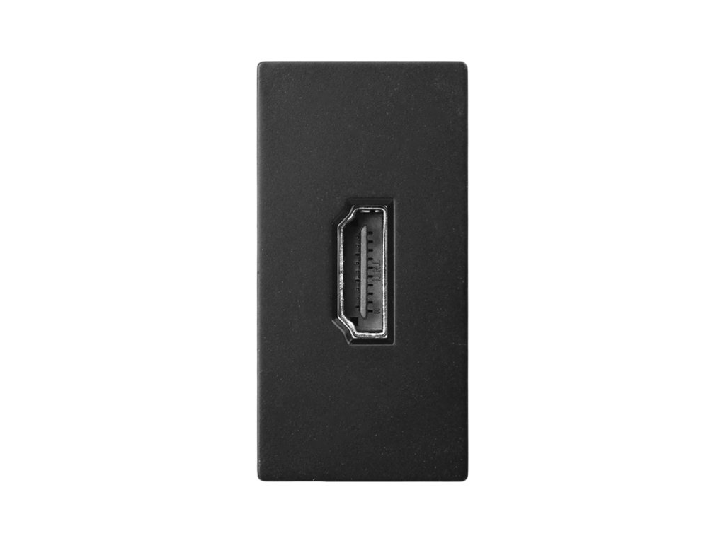 Půlmodul HDMI verze 2.0, odpovídající polovině otvoru rámečku, dostupný ve čtyřech barevných variantách. Pro instalaci je nutný specifický rámeček pro půlmoduly.