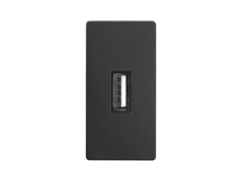 Půlmodul koncové zásuvky USB (se zapojením přívodního kabelu přes šroubové svorky), odpovídající polovině otvoru rámečku, dostupný ve čtyřech barevných variantách. Pro instalaci je nutný specifický rámeček pro půlmoduly.