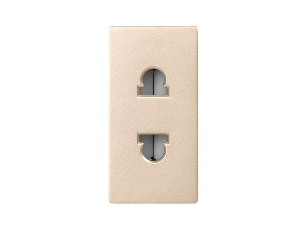 Půlmodul dvoupólové zásuvky (bez uzemnění), odpovídající polovině otvoru rámečku, dostupný ve čtyřech barevných variantách. Pro instalaci je nutný specifický rámeček pro půlmoduly.