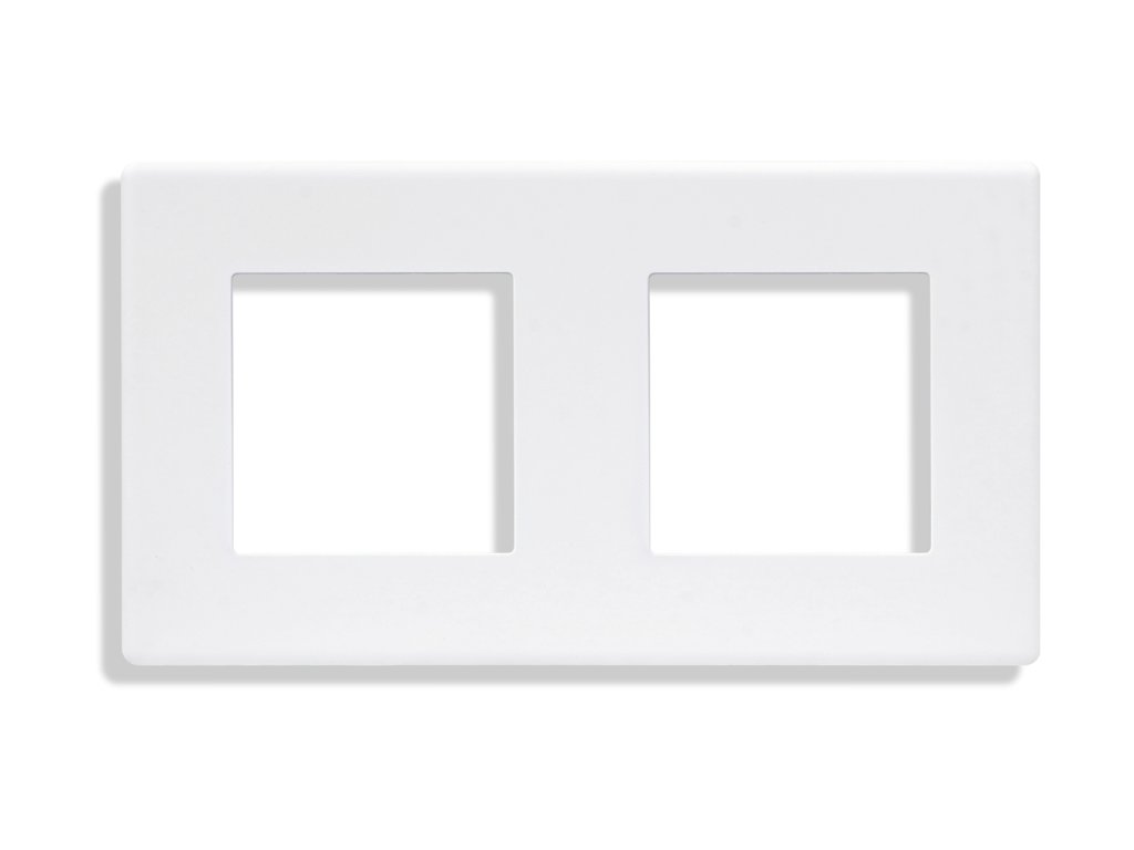 Dvojmístný rámeček z kvalitního PC plastu s příjemným matným povrchem, odolný vůči opotřebení, s možností barevné kombinace s jakoukoliv barvou modulu. S rozměry 157 x 86 mm je vhodný pro standardní instalační krabice a umožňuje jednoduché osazení modulů a dotykových vypínačů.