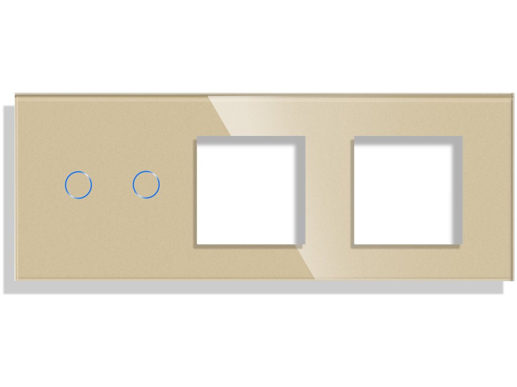 Exkluzivní dotykový panel Gala Touch s rámečkem z tvrzeného skla pro trojkombinaci jednoho dvojtlačítkového strojku a dvou funkčních modulů. Panel je díky svému povrchu snadno omyvatelný, v případě rozbití nikdy nepředstavuje riziko pořezání, je stálobarevný a nehořlavý. Součástí panelu je i kovová základna určená k osazování dotykových strojků.