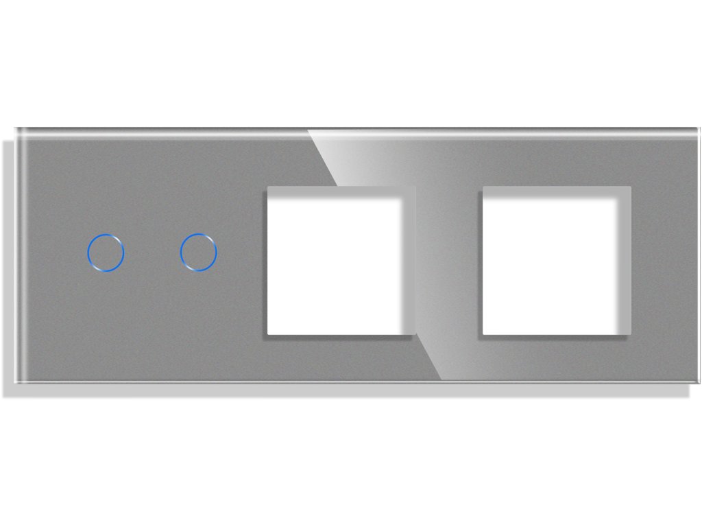 Dotykový panel s rámečkem vhodný pro trojkombinaci jednoho dvojtlačítkového strojku a dvou funkčních modulů. Rozměr 228x86 mm.