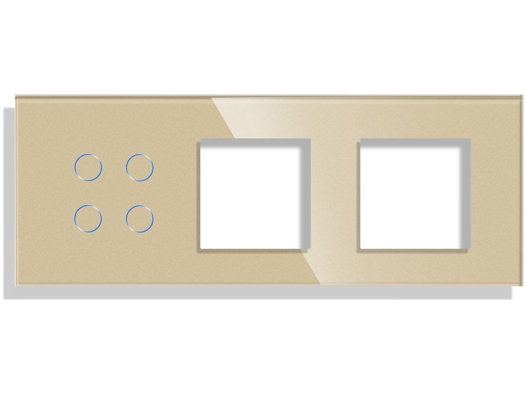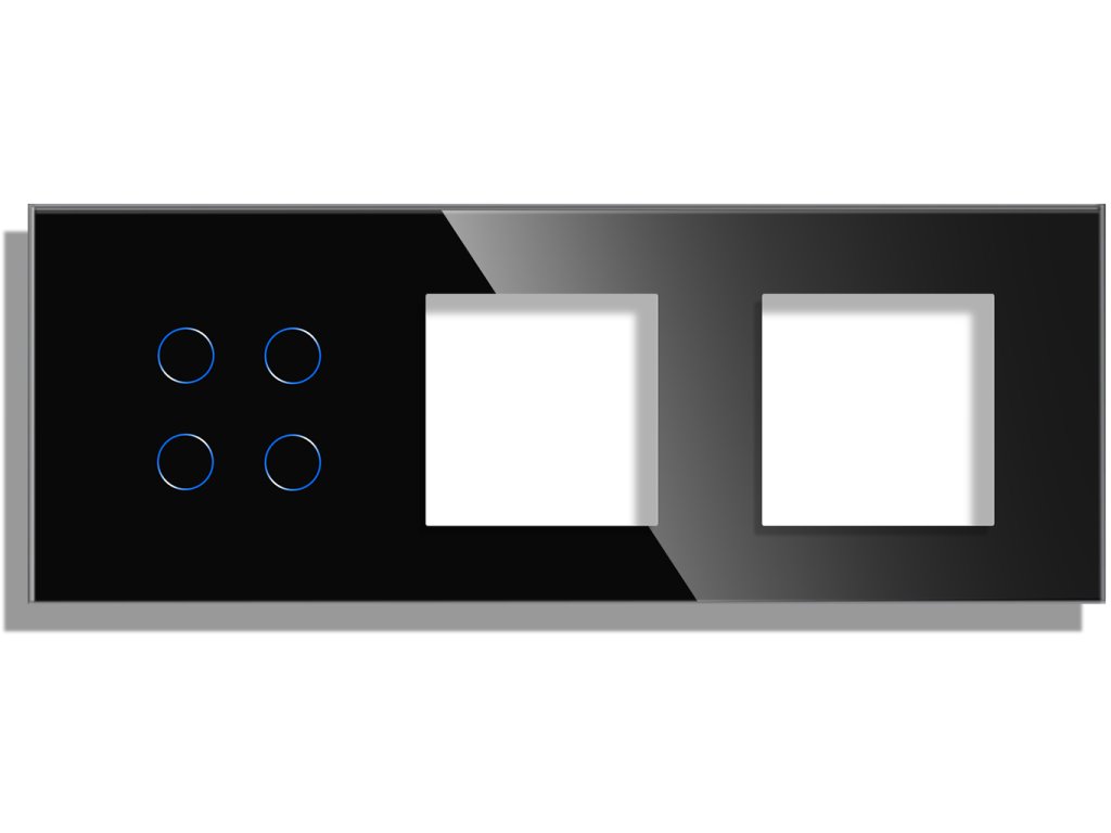Exkluzivní dotykový panel Gala Touch s rámečkem z tvrzeného skla pro trojkombinaci jednoho čtyřtlačítkového strojku a dvou funkčních modulů. Panel je díky svému povrchu snadno omyvatelný, v případě rozbití nikdy nepředstavuje riziko pořezání, je stálobarevný a nehořlavý. Součástí panelu je i kovová základna určená k osazování dotykových strojků.